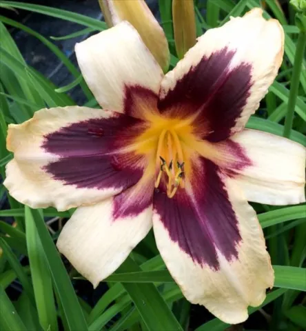 Hemerocallis 'Wild Horses' est une plante vivace formant des touffes de longues feuilles vertes clair dès la fin de l'hiver. Les grandes fleurs crème et bordeaux s'épanouissent bien au dessus du feuillage en début d'été par dizaines, offrant un spectacle de couleurs chatoyantes.