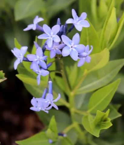 Amsonia 'Blue Ice' est une plante vivace rustique développant des tiges dressées de sa souche racinaire compacte, s'élargissant lentement mais durablement. Les grappes terminales de fleurs s'épanouissent en fin de printemps et en été, et laissent apparaître de magnifiques étoiles bleu métal. Feuillage d'automne jaune.