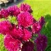 Aster 'Mathilde' est une plante vivace très rustique qui forme des touffes denses grâce à ces racines souterraines vigoureuses. En fin d'été, le coussin de feuilles vert foncé, large et étalé se couvre de ponpons d'un beau et vibrant magenta.