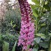Eucomis comosa 'Reuben' est un bulbe vivace formant une large rosette de longues feuilles vert tendre très lumineuses. En fin d'été les hampes florales se dressent et les petites fleurs rose soutenu s'épanouissent les unes après les autres.