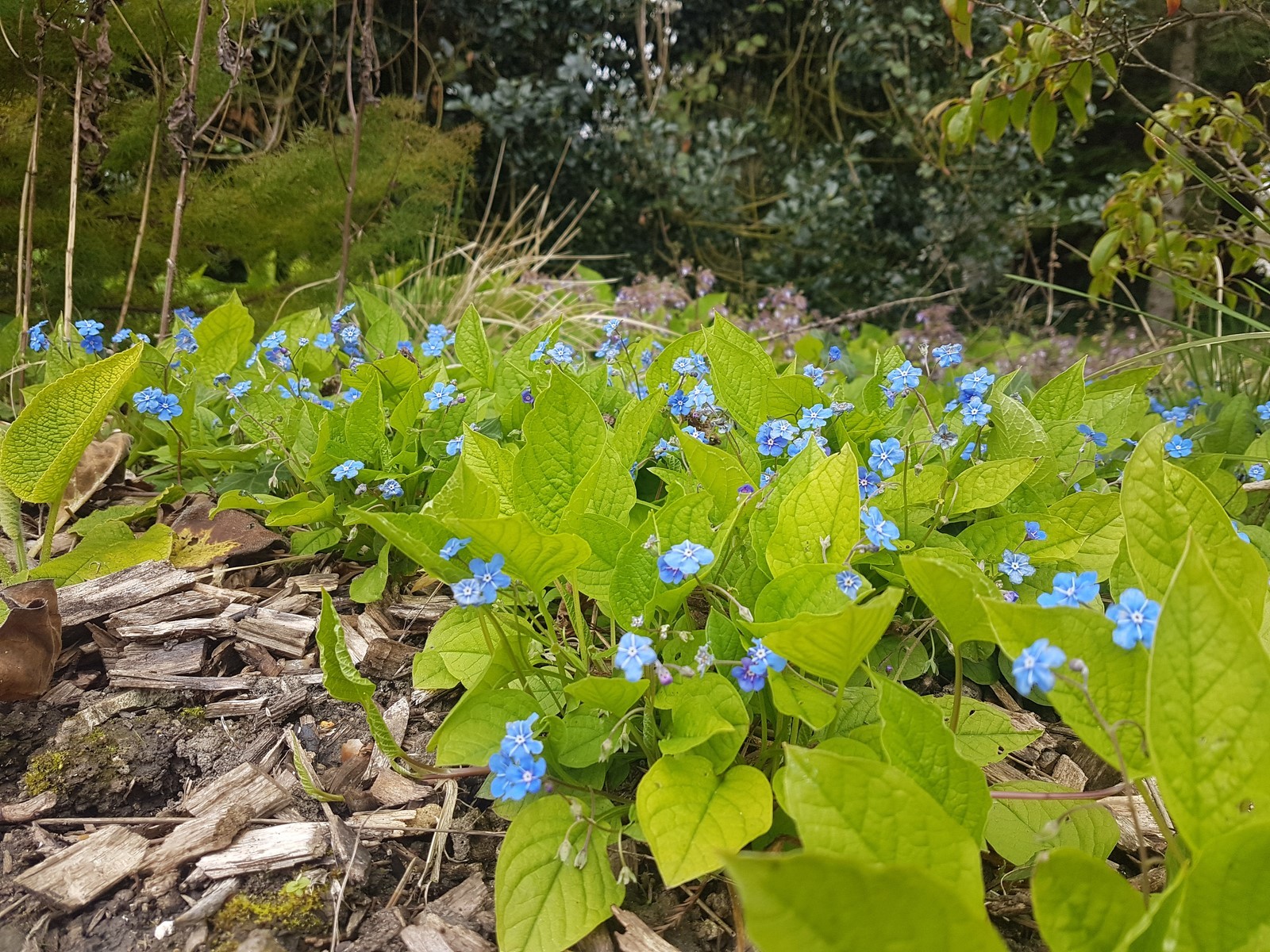 Omphalodes verna est une plante vivace rampante qui se développe en enracinant ses tiges sur son passage. Ses feuilles sont vert clair et en fin d'hiver portent les bouquets de petite fleurs bleues ciel en accord parfait avec le feuillage. Facile de culture, la plante s'étale et couvre rapidement. Les racines sont néanmoins peu profondes et la plante est facile à contrôler et ne deviendra jamais une plante indésirable. Sa taille réduite ne gêne en rien la croissance d'autres plantes et bulbes du sous bois.