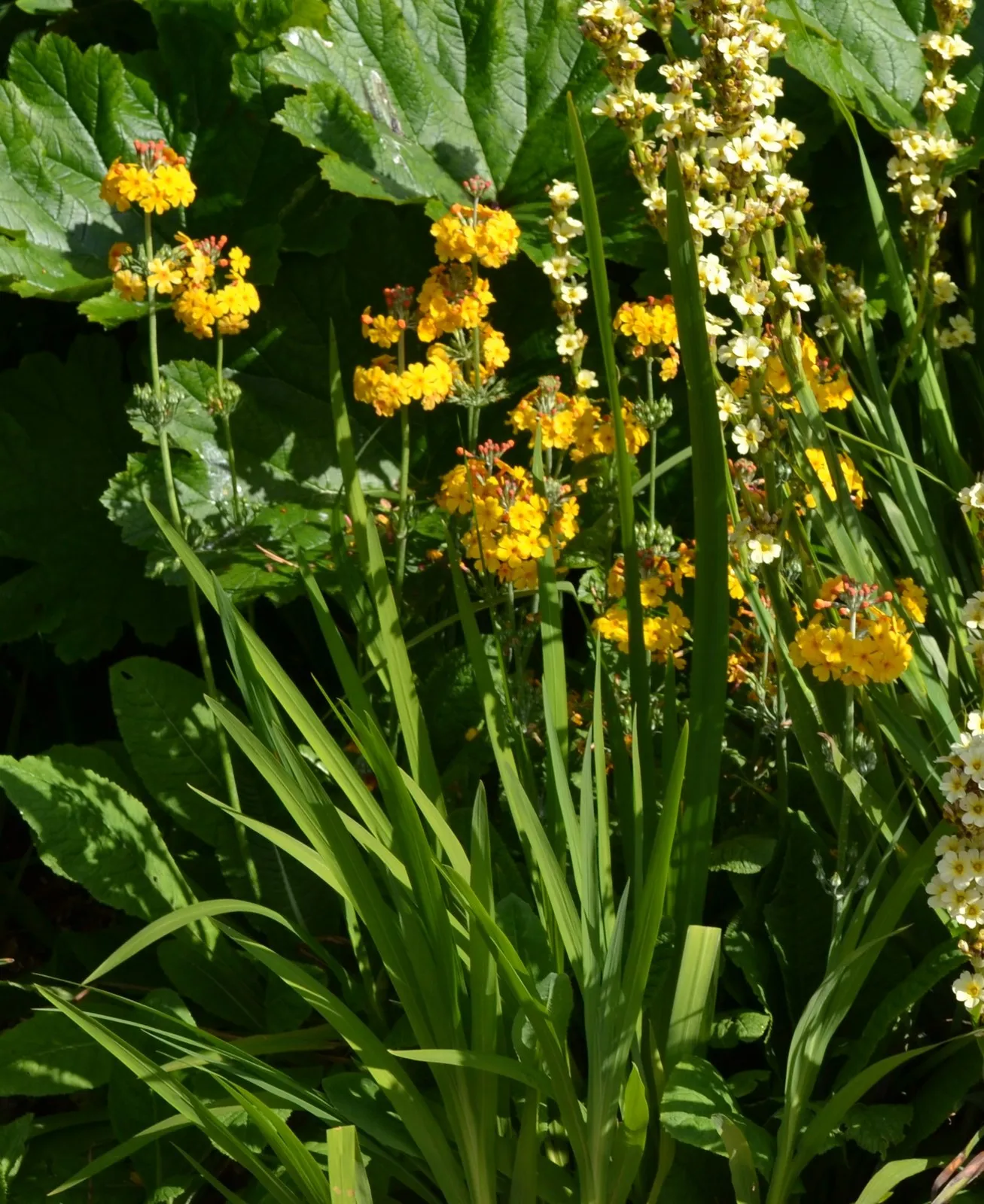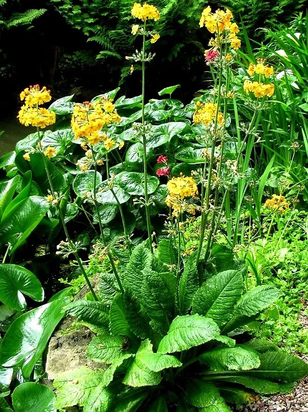 Primula bulleyana est une plante vivace formant une rosette de feuilles vertes tendres, semblable à nos primevères communes en plus larges. En fin de printemps, les tiges florales se développent en nombre et forment de 2 à 5 étages de fleurs oranges en cluster offrant un bel effet aérien en bordure de bassin ou ruisseau.