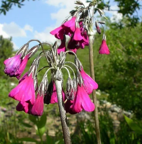 Primula secundiflora est une plante vivace formant des rosettes de feuilles vertes claires, finement crénelées et lobées. en fin de printemps, les grandes tiges florales se développent et produisent des grappes de fleurs rose soutenu retombantes, très lumineuses.