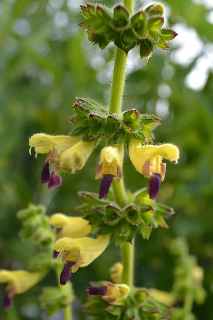 Salvia flava var. megalantha est une vivace de la famille des sauges, bien rustique en sol suffisamment drainé. Elle forme une rosette de feuilles basales vertes foncées épaisses, duveteuses et profondément nervurées. En fin de printemps, la floraison de nombreuses fleurs jaunes marquées d'un trait pourpre sur la lèvre inférieure est particulièrement originale.