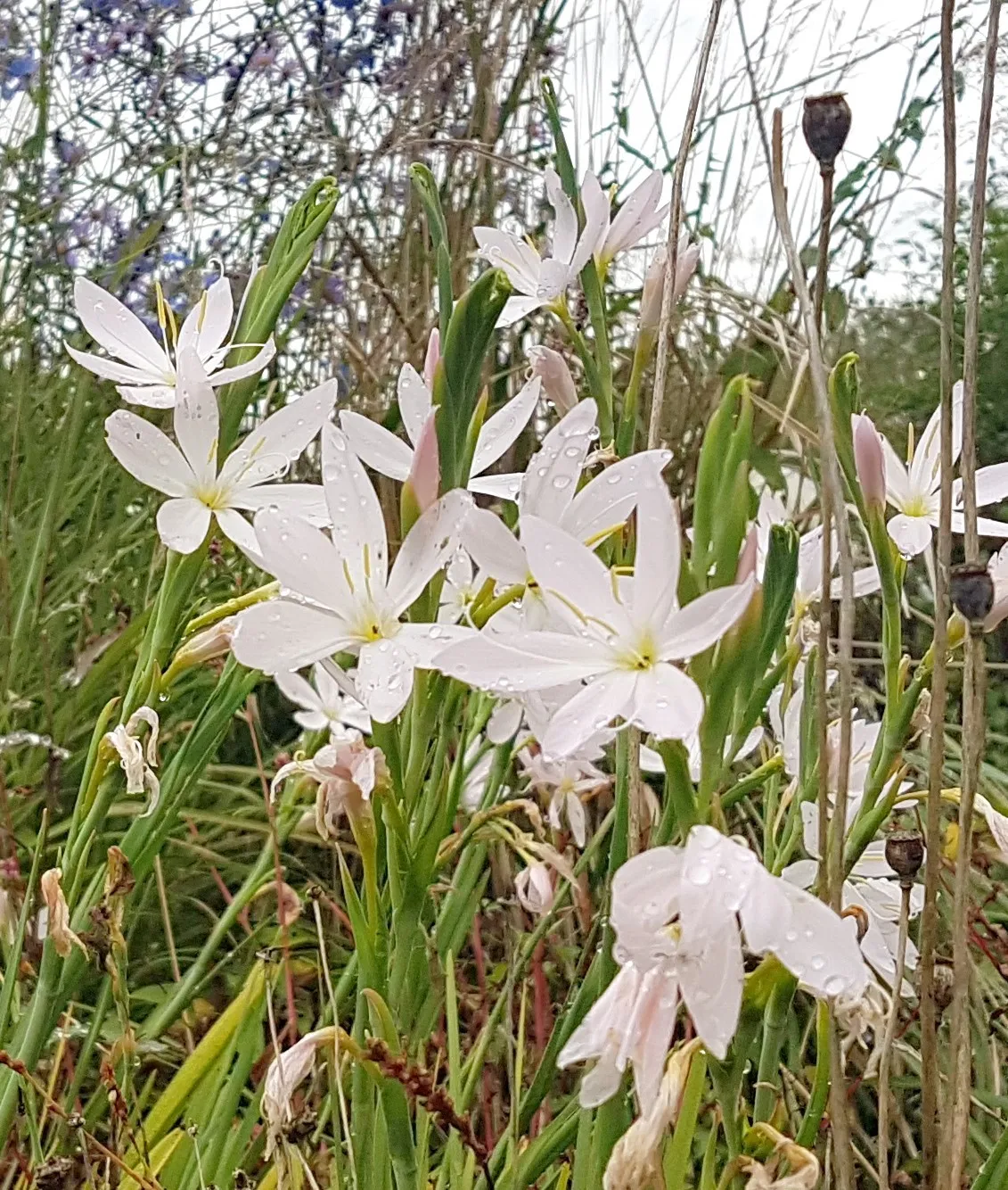 Schizostylis 'Pink Princess' est une plante vivace rhizomateuse au feuillage persistant en hiver en climat doux et caduque en climat plus froid. Dans des conditions idéales elle colonise facilement une bordure ou un bord de bassin. Dans son pays d'origine en Afrique du Sud, le Lys des Cafres affectionne les terrains humides, et supportera chez nous également d'être submergé sur de courtes périodes.