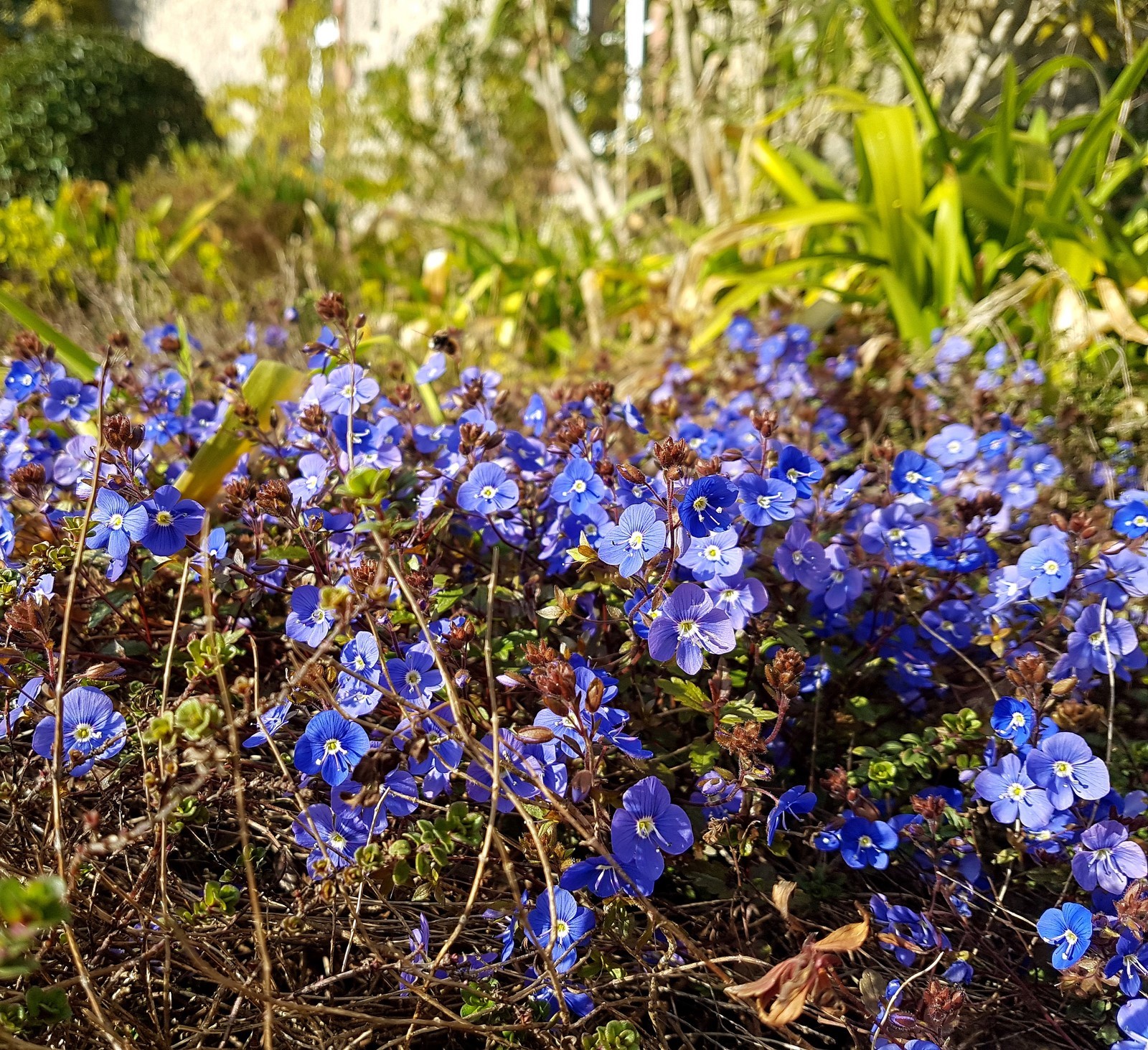 Veronica peduncularis 'Georgia Blue' est une petite plante vivace tapissante se développant par de fines racines souterraines et couvrant de larges surfaces. En fin d'hiver les nouvelles petites feuilles vertes foncées, se couvrent rapidement d'une multitude de toutes aussi petites fleurs simples bleues, recouvrant simplement tout le feuillage durant tout le printemps.